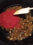 While potatoes are cooking, gather remaining ingredients, dice onion and puree tomatoes.