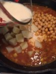 Add potatoes, chickpeas and coconut milk. Continue to simmer for about 10-15 minutes.
